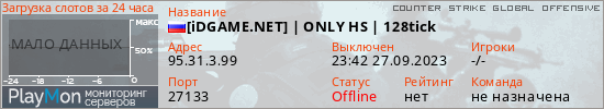 Общая информация ID: 57325 Ссылка: https://playmon.ru/server/95.31.3.99:27133 Адрес: 95.31.3.99:27133 Игроки: 0/30 Статус: Выключен Владелец: Не определён