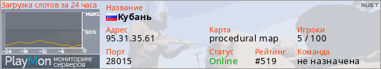 ID: 79808Ссылка: https://playmon.ru/server/95.31.35.61:28015