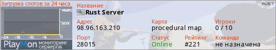 ID: 66111Ссылка: https://playmon.ru/server/98.96.163.210:28015