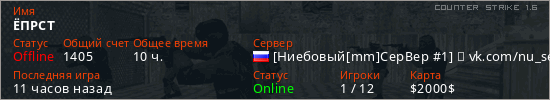 Последний раз был в сети 4 часа назад Игрок с таким ником замечен на 2 серверах