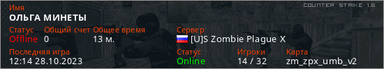 Играет на Counter Strike 1.6 сервере. Страна: РоссияПервый раз замечен 14:37 26.10.2023