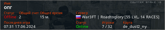 Играет на Counter Strike 1.6 сервере. Страна: РоссияПервый раз замечен 16:39 17.07.2022