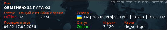 Играет на Counter Strike Global Offensive сервере. Страна: УкраинаПервый раз замечен 20:33 16.02.2026