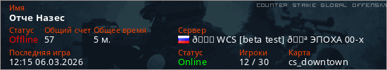 Играет на Counter Strike Global Offensive сервере. Страна: РоссияПервый раз замечен 12:11 06.03.2026