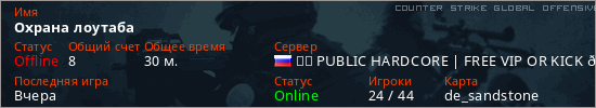 Играет на Counter Strike Global Offensive сервере. Страна: РоссияПервый раз замечен 18:04 05.09.2025