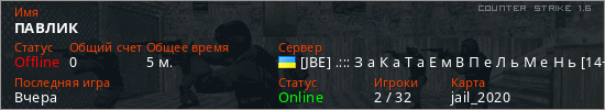 Последний раз был в сети Вчера Игрок с таким ником замечен на 6 серверах