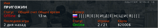 Последний раз был в сети 2 дня назад Игрок с таким ником замечен на 13 серверах