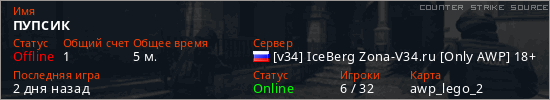 Последний раз был в сети 2 дня назад Игрок с таким ником замечен на 34 серверах