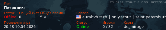 Играет на Counter Strike Global Offensive сервере. Страна: СШАПервый раз замечен 20:46 10.04.2026
