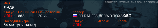 Играет на Counter Strike Global Offensive сервере. Страна: РоссияПервый раз замечен 22:07 24.02.2026