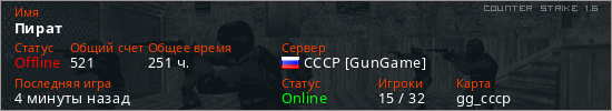 Играет на Counter Strike 1.6 сервере. Страна: РоссияПервый раз замечен 03:08 10.11.2025