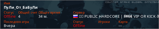 Играет на Counter Strike Global Offensive сервере. Страна: РоссияПервый раз замечен 11:43 26.01.2025