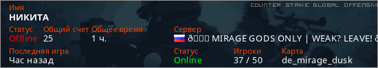 Играет на Counter Strike Global Offensive сервере. Страна: РоссияПервый раз замечен 14:29 04.06.2024