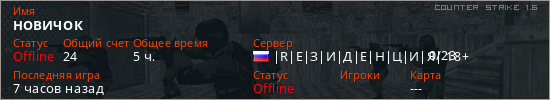 Играет на Counter Strike 1.6 сервере. Страна: РоссияПервый раз замечен 19:07 10.05.2024