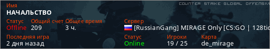 Играет на Counter Strike Global Offensive сервере. Страна: РоссияПервый раз замечен 19:06 10.10.2025