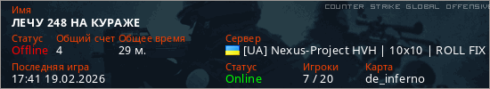 Играет на Counter Strike Global Offensive сервере. Страна: УкраинаПервый раз замечен 17:58 30.01.2026