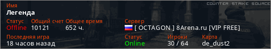 Последний раз был в сети 16 часов назад Игрок с таким ником замечен на 20 серверах