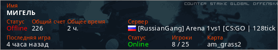 Играет на Counter Strike Global Offensive сервере. Страна: РоссияПервый раз замечен 17:00 26.01.2026