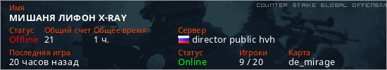 Последний раз был в сети 19 часов назад Игрок с таким ником замечен на 8 серверах