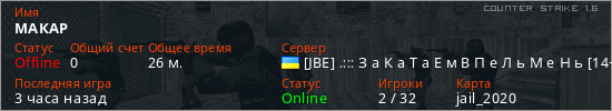 Играет на Counter Strike 1.6 сервере. Страна: УкраинаПервый раз замечен 13:06 11.04.2026