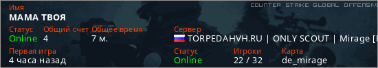 Последний раз был в сети Час назад Игрок с таким ником замечен на 5 серверах