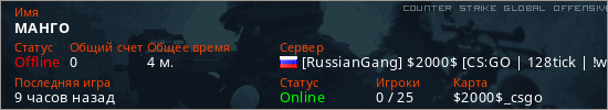 Играет на Counter Strike Global Offensive сервере. Страна: РоссияПервый раз замечен 19:56 17.03.2026