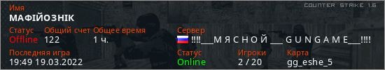 Общая информация игрока