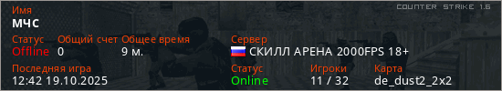 Играет на Counter Strike 1.6 сервере. Страна: РоссияПервый раз замечен 18:36 13.11.2023