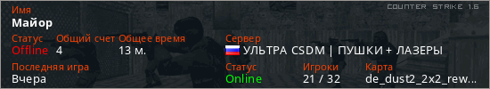 Последний раз был в сети Вчера Игрок с таким ником замечен на 18 серверах
