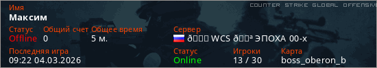 Играет на Counter Strike Global Offensive сервере. Страна: РоссияПервый раз замечен 08:59 04.03.2026