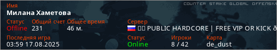 Играет на Counter Strike Global Offensive сервере. Страна: РоссияПервый раз замечен 19:30 22.06.2025