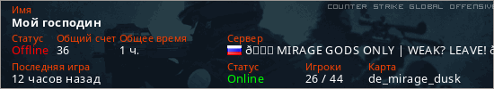 Последний раз был в сети 11 часов назад Игрок с таким ником замечен на 9 серверах