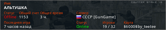 Играет на Counter Strike 1.6 сервере. Страна: РоссияПервый раз замечен 23:21 11.03.2026