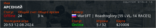 Играет на Counter Strike 1.6 сервере. Страна: РоссияПервый раз замечен 09:08 16.12.2023