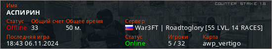 Последний раз был в сети 18:43 06.11.2024 Игрок с таким ником замечен на 11 серверах