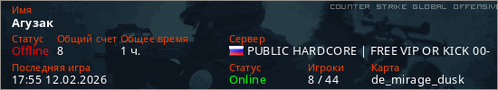 Играет на Counter Strike Global Offensive сервере. Страна: РоссияПервый раз замечен 10:40 02.02.2026