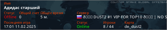 Играет на Counter Strike Global Offensive сервере. Страна: РоссияПервый раз замечен 16:43 11.02.2025