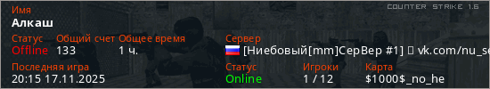 Последний раз был в сети 20:15 17.11.2025 Игрок с таким ником замечен на 23 серверах