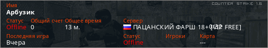 Последний раз был в сети Вчера Игрок с таким ником замечен на 20 серверах