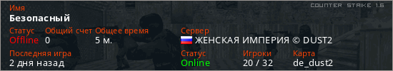 Последний раз был в сети 2 дня назад Игрок с таким ником замечен на 4 серверах