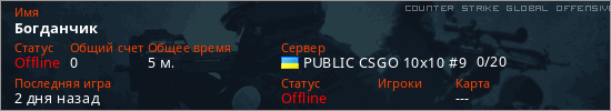 Играет на Counter Strike Global Offensive сервере. Страна: УкраинаПервый раз замечен 13:56 10.03.2026