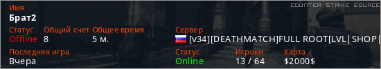 Последний раз был в сети Вчера Игрок с таким ником замечен на 2 серверах