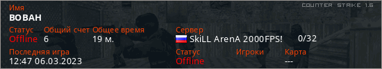 Играет на Counter Strike 1.6 сервере. Страна: РоссияПервый раз замечен 13:10 11.12.2022