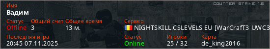 Последний раз был в сети 20:45 07.11.2025 Игрок с таким ником замечен на 37 серверах
