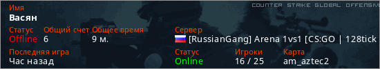 Играет на Counter Strike Global Offensive сервере. Страна: РоссияПервый раз замечен 23:57 15.12.2025
