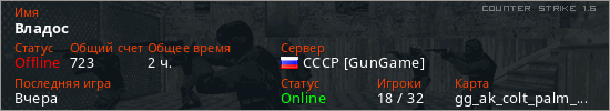 Последний раз был в сети Вчера Игрок с таким ником замечен на 18 серверах
