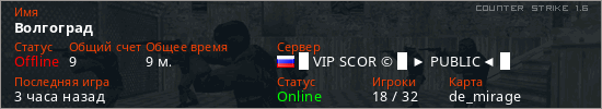 Играет на Counter Strike 1.6 сервере. Страна: РоссияПервый раз замечен 20:16 22.12.2025