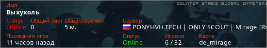 Играет на Counter Strike Global Offensive сервере. Страна: РоссияПервый раз замечен 16:15 27.03.2026