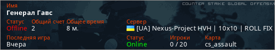 Играет на Counter Strike Global Offensive сервере. Страна: УкраинаПервый раз замечен 00:06 07.03.2026