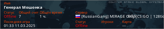 Играет на Counter Strike Global Offensive сервере. Страна: РоссияПервый раз замечен 16:57 10.03.2025